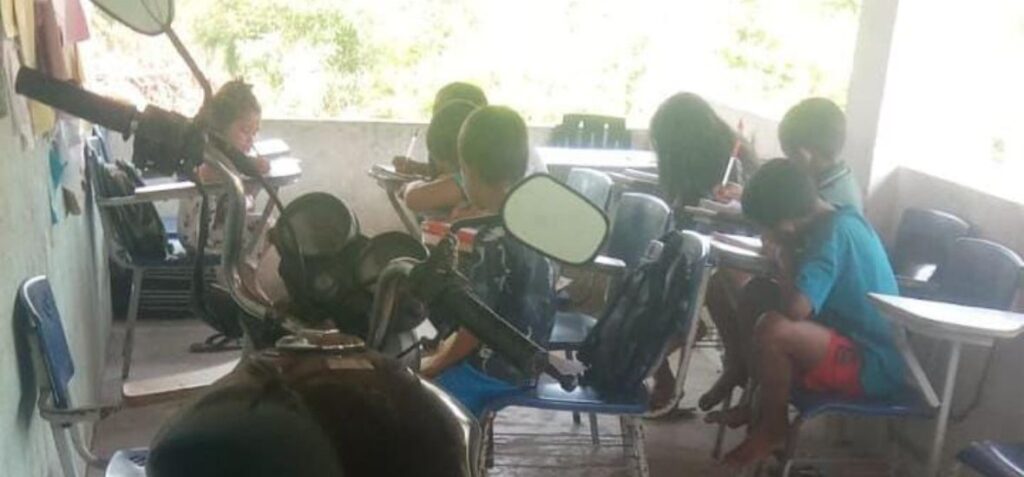 Nas imagens de vídeo que chegaram até a nossa redação, mostram sala de aula improvisada, expondo os alunos há condições sub-humana com ausência de recursos básicos para o mínimo de aprendizagem — um retrato gritante do abandono que evidencia o resultado do desvio sistemático de recursos da educação.